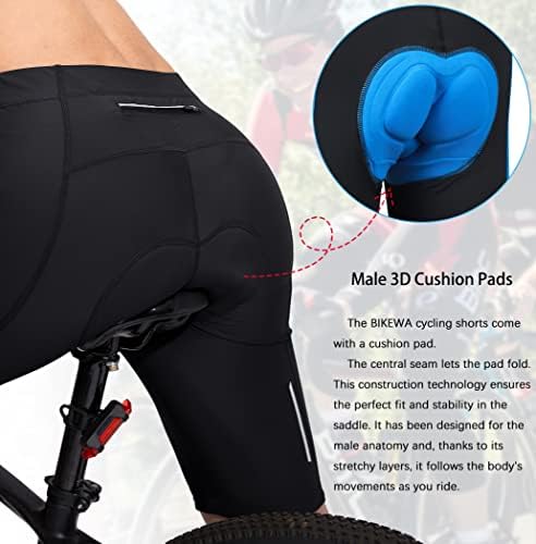 Bikewa Men’s Bike Shorts 3D Padded Cycling Road Biking Mountain Riding Biker Bicycle UPF 50+ Cycle Shorts Zipper Pockets