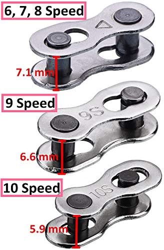 Compatibility: 6, 7, 8 speed missing link is compatible to all 7.1 mm wide 6, 7, 8 speed chain of bike; 9 Speed missing link fits for all 6.6 mm wide 9 speed chain of bike; 10 Speed missing link fits for all 5.9 mm wide 10 speed chain of bike