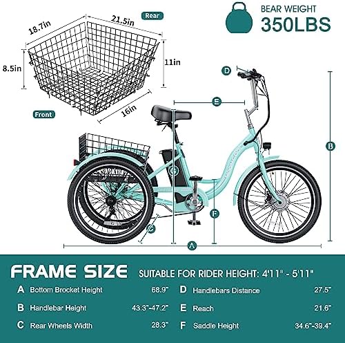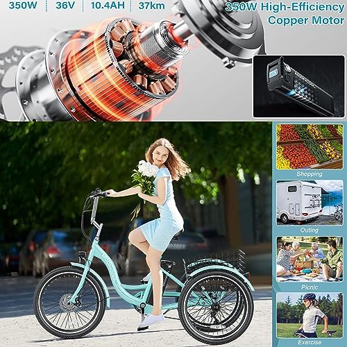 H&ZT 7 Speed Electric Trike Tricycle, 350W 10AH 15MPH 36V Lithium Battery UL Certified, 24″ / 26″ Electric 3 Wheel Bikes for Adults