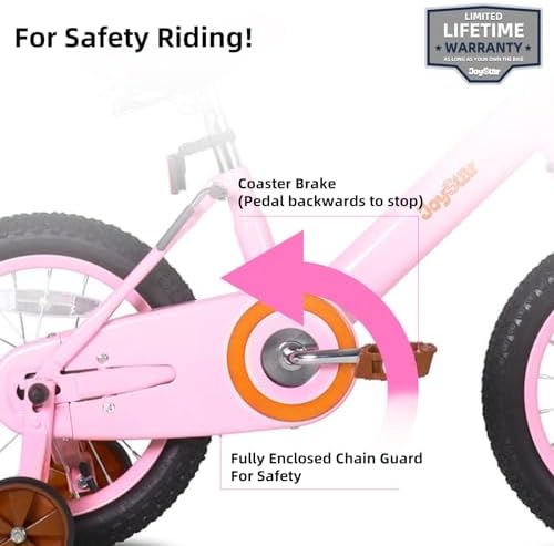 Safe for Young Riders – Coaster brake is easy to provide phenomenal stopping power when needed, so they can stay in full control, a great option for young rider. Enclosed chain guard, prevent your kids getting hurt. Removable training wheels will keep everything pointing in the right direction till she’s ready to balance on her own.