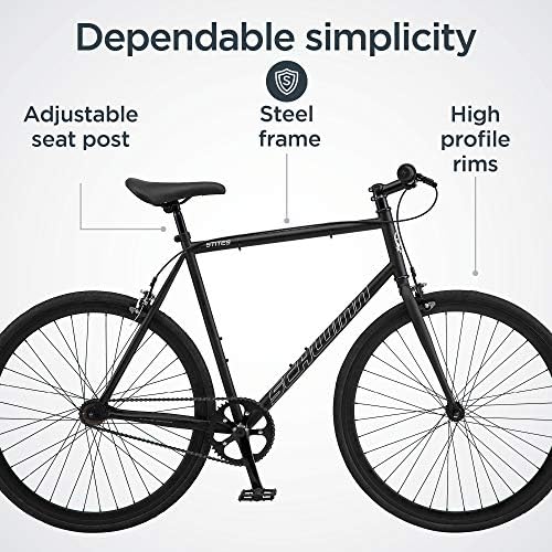 Schwinn Stites Fixie Adult Commuter Road Bike, Single-Speed, Steel Stand-Over Frame, 700c Wheels, Flip-Flop Hub, Multiple Colors