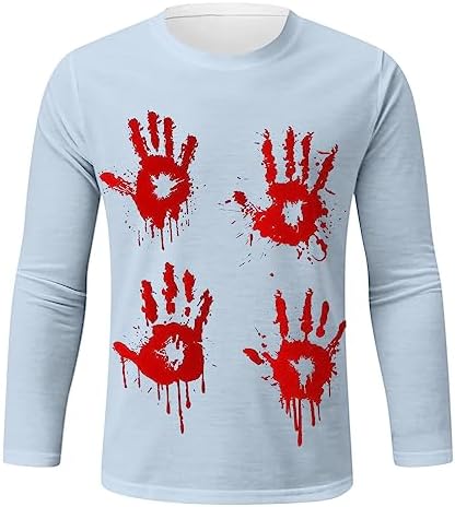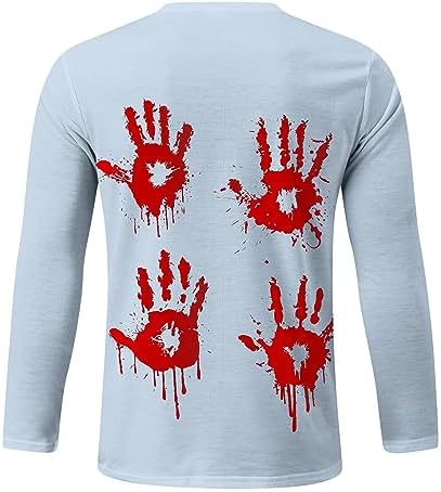SKRK Shirt White Men’s Halloween Horn Print T Shirt Long Sleeve Crew Neck Top T Shirt Shirt White