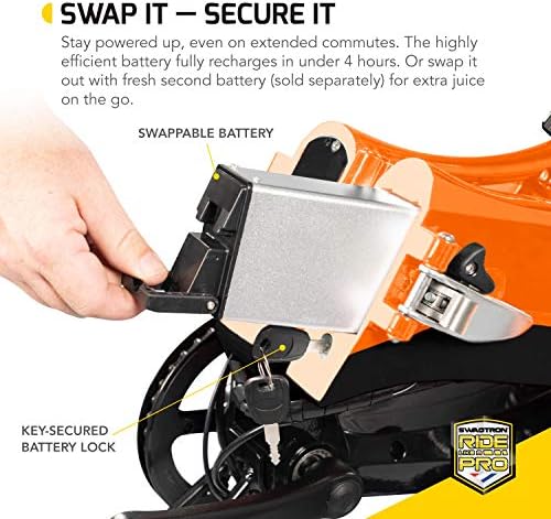 EXTRA POWER ON DEMAND — Swappable 36V Li-ion battery fully charges in 3-4 hours. Grab an extra battery (sold separately) and keep it as a spare whenever you need it. A key-secured compartment keeps the battery locked and protected from dust and splashes