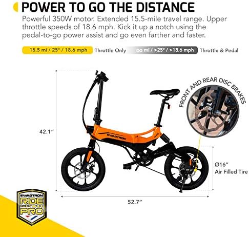 Swagtron Swagcycle EB-7 Elite Plus Folding Electric Bike with Removable Battery, Orange/Black, 16″ Wheels, 7-Speed