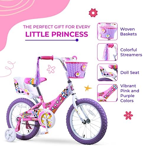 Titan Girl’s Flower Princess BMX Bike for Girls with Training Wheels 16 Inch Kids Toddler Bicycle with Utility Basket & Streamers